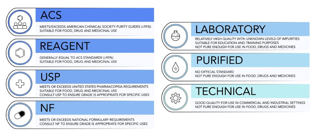 ۲. گرید (Grade) مواد شیمیایی