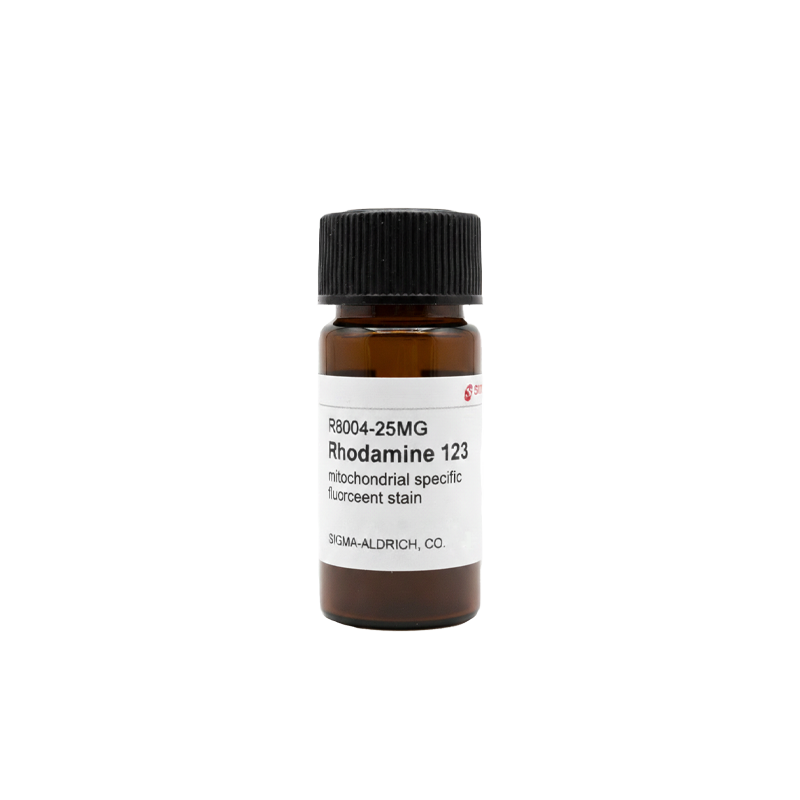 رودامین ۱۲۳ (Rhodamine 123) با کد محصول R8004 از برند Sigma-Aldrich، یک رنگ فلورسنت کلاسیک و بسیار پرکاربرد در تحقیقات زیستی است. این مولکول یک زامن (dye) کاتیونی محسوب می‌شود که توانایی نفوذ به داخل میتوکندری را دارد و به‌خاطر ویژگی‌های خاصش به طور گسترده در آزمایش‌های زیست‌شناسی سلولی و بیوشیمیایی استفاده می‌شود.